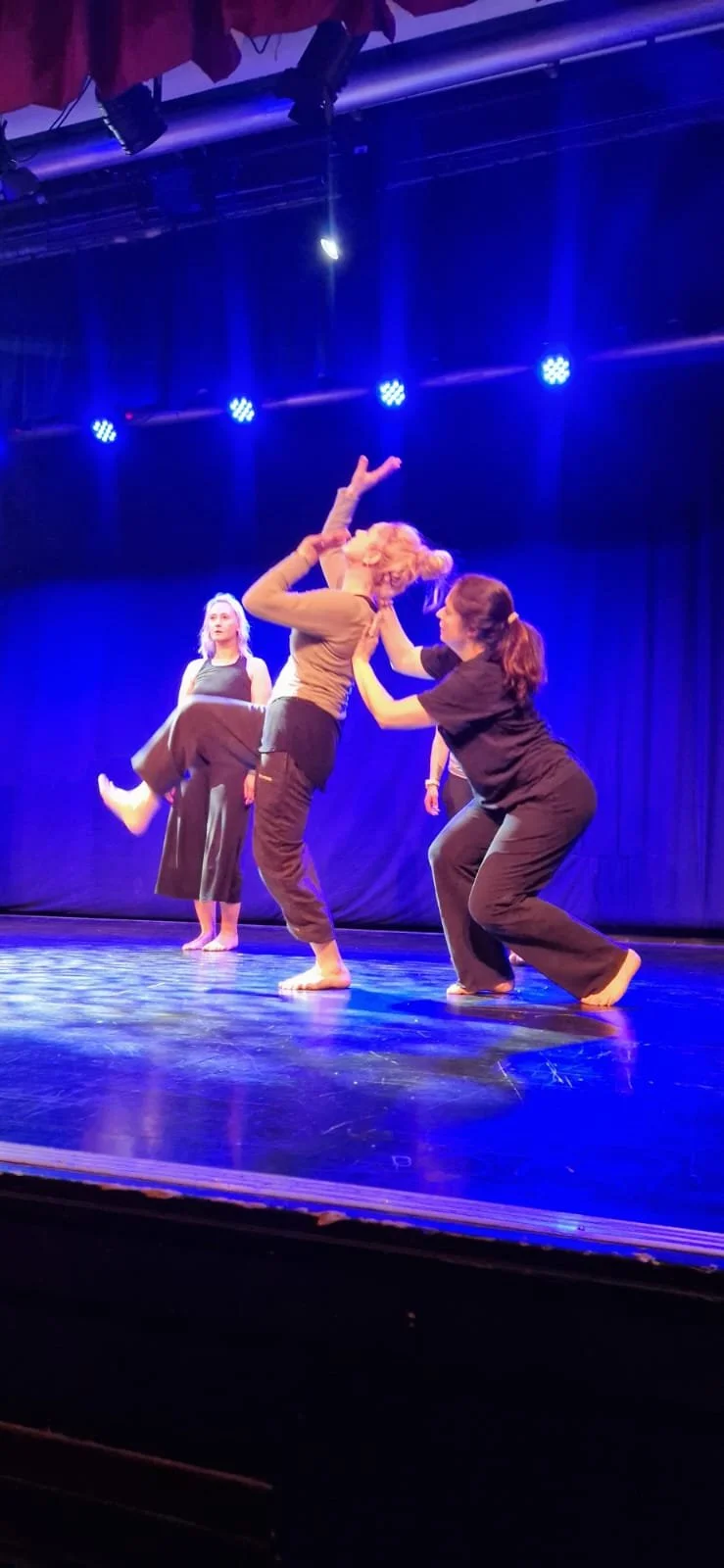 We have been dancing together for over 30 years and we love to share our work, either to an audience or with participants in a workshop. We work to people’s strengths and there’s no need for fancy shoes or clothes, or the ability to stretch your leg behind your head! Just a sense of fun and clothes you can move comfortably in.